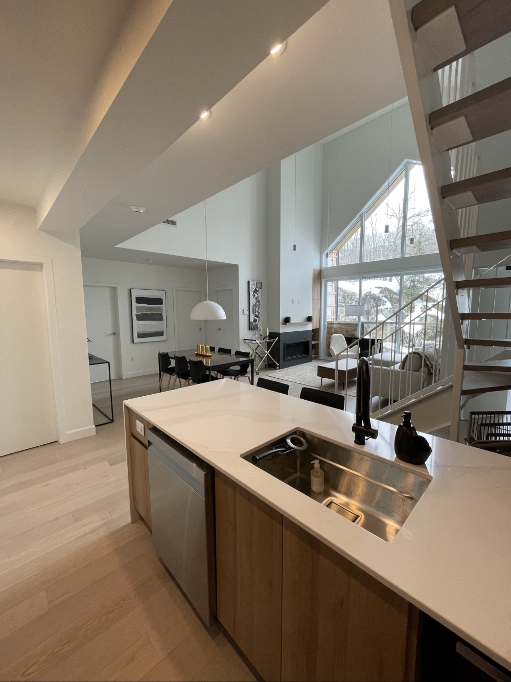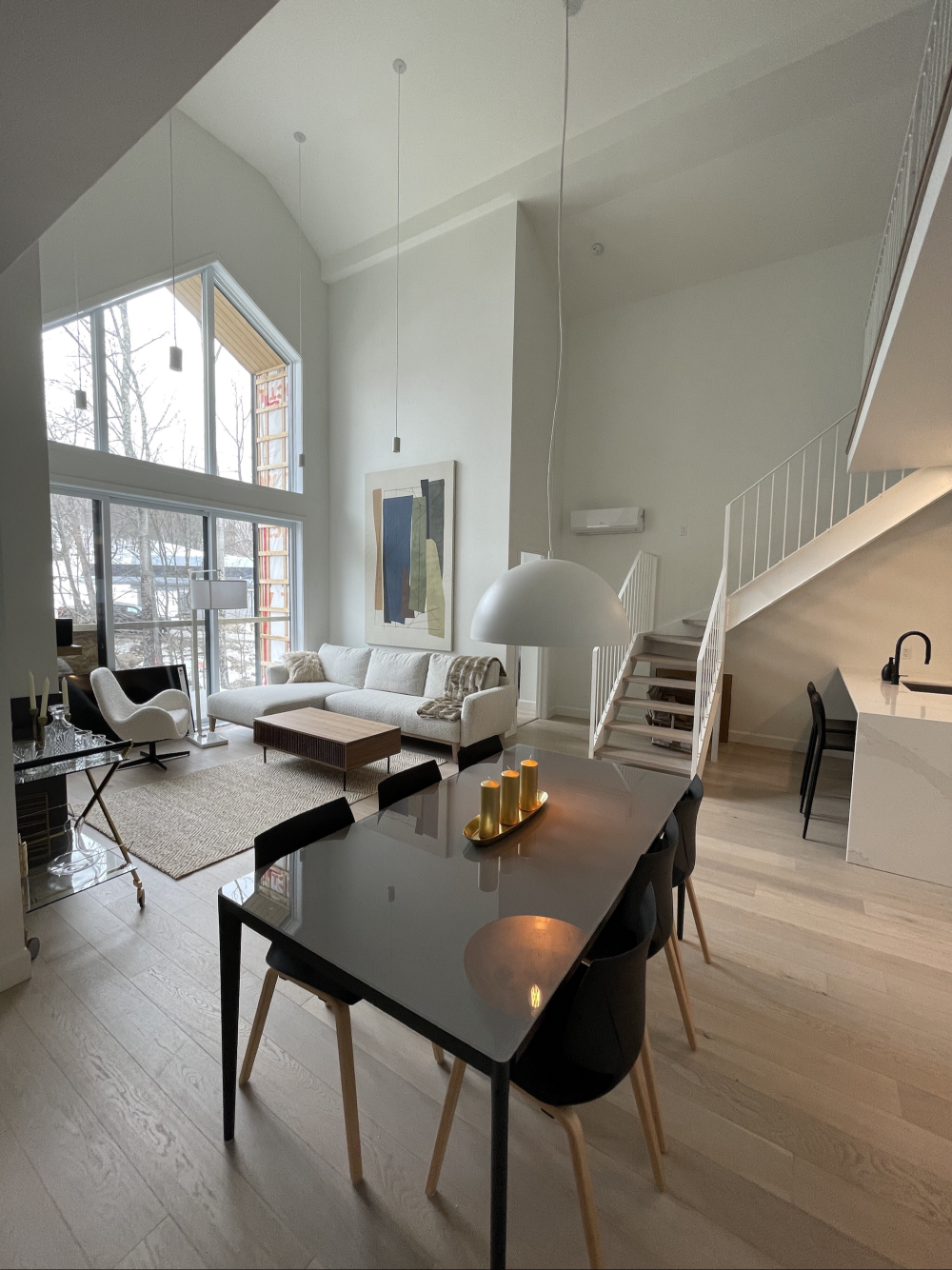 Découvrez ce somptueux penthouse de 1400 pieds carrés, entièrement meublé, situé à Owl's Head, offrant trois chambres et une mezzanine.