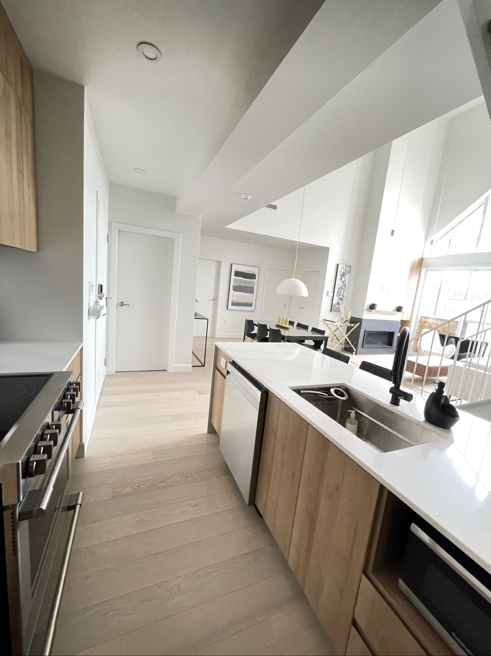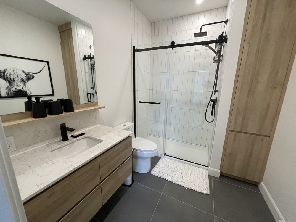 Profitez du confort avec un foyer, une terrasse extérieure, un stationnement intérieur accessible par ascenseur avec borne de recharge, et un stationnement extérieur.